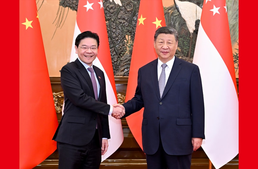新华社北京6月24日电(记者董雪)6月24日上午,国家主席习近平在北京人民大会堂会见来华进行正式访问的新加坡总理黄循财。