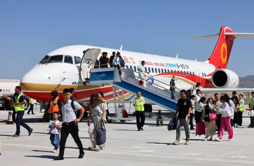 8月2日,新疆巴里坤往返乌鲁木齐航线正式开通,该航线由成都航空执飞,每周二、四、六执行。钟卫亮摄(人民图片网)
