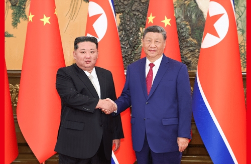9月4日晚,中共中央总书记、国家主席习近平在北京人民大会堂同来华出席纪念中国人民抗日战争暨世界反法西斯战争胜利80周年活动的朝鲜劳动党总书记、国务委员长金正恩举行会谈。
