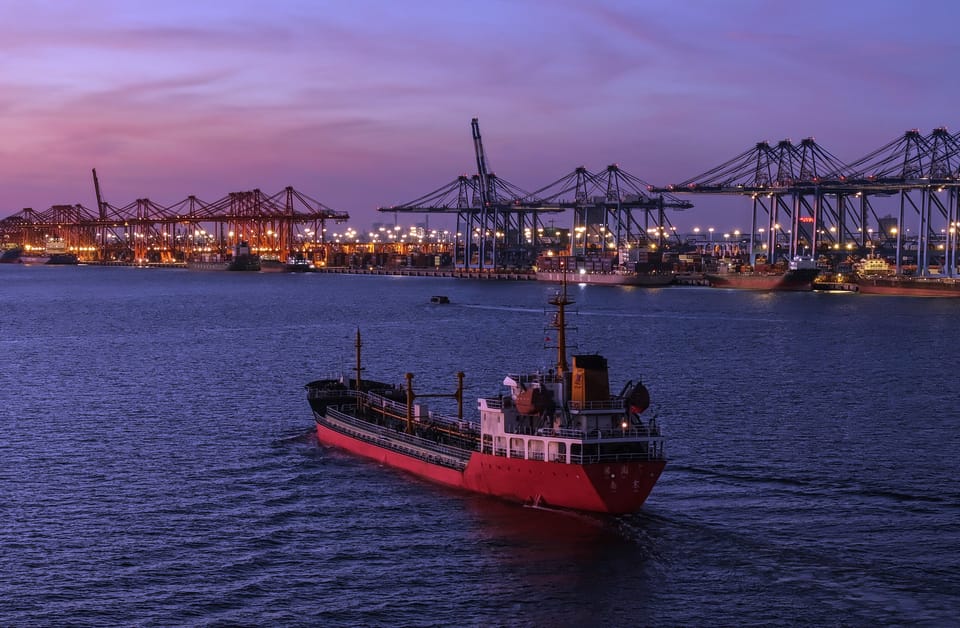 9月4日,一艘海轮驶入钦州港装卸货物(无人机照片)。