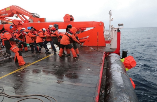 11时许,任健收起释放设备暂停搜索。考察队决定,待下一项目完成后,“雪龙2”号晚上再回来做最后的尝试。