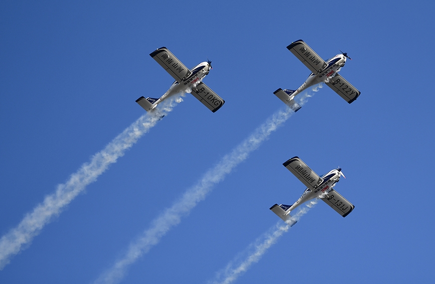 这是11月21日在株洲芦淞机场拍摄的动态飞行表演。