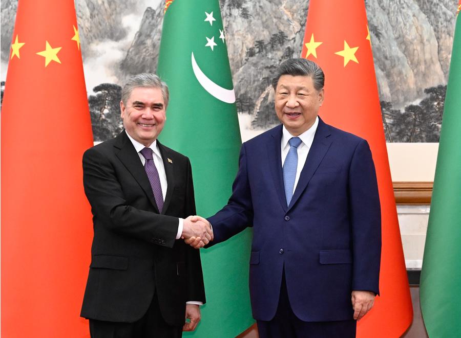 3月18日下午,国家主席习近平在北京钓鱼台国宾馆会见来华进行友好访问的土库曼斯坦民族领袖、人民委员会主席别尔德穆哈梅多夫。新华社记者 申宏 摄