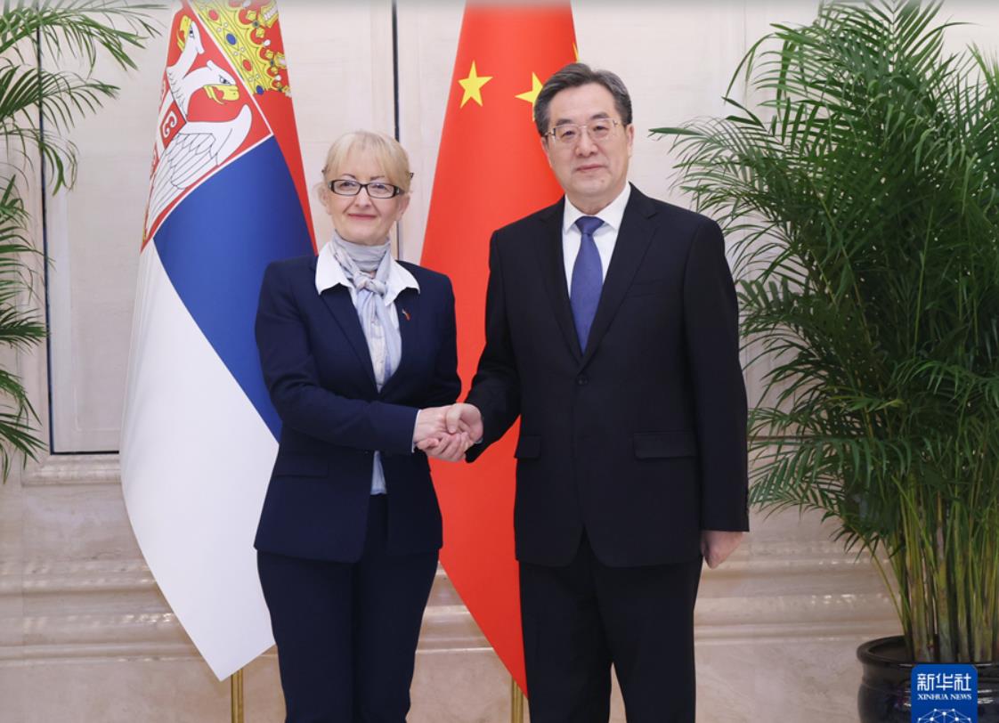 在会见拉古什时,丁薛祥指出,中塞铁杆友谊跨越山海、历久弥坚。习近平主席同武契奇总统多次举行会晤,为两国关系发展指明了方向。中方愿同塞方一道,落实好两国元首重要共识,支持彼此重大关切和核心利益,深化高质量共建“一带一路”合作,将科技创新合作打造成双边关系新的增长点,推动新时代中塞命运共同体建设取得更多成果。