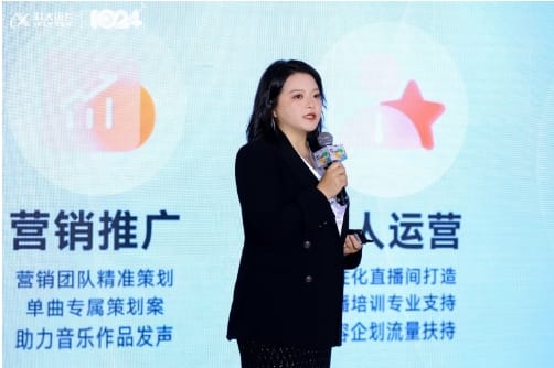 郭嘉介绍道,2024年3月,讯飞音乐成都音乐人孵化基地开业运营,“奇偶节拍”工作室正式挂牌,在这个可容纳200人的音乐基地里,搭建了价值百万的灯光及舞台设备、20间直播间,2间录音棚,以及配套的培训教室、声乐老师、妆造老师等专业化基建内容,在过去的六个月的时间,旗下签约达人及主播近百人,短视频侧达人粉丝增量超千万。