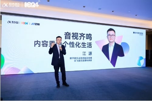 随后,数字娱乐业务部副总经理、讯飞音乐首席科学家江源发表演说《音视齐鸣,内容重绘个性化生活》,讲述了酷音铃声及讯飞图酷如何通过打造优质内容,满足用户的个性化需求,并不断拓宽与各方内容合作的宽度与深度。