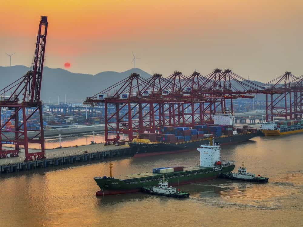 浙江宁波舟山港金塘港区码头作业繁忙(2024年2月11日摄,无人机照片)。新华社发(姚峰 摄)