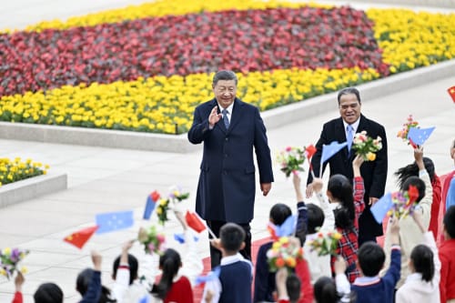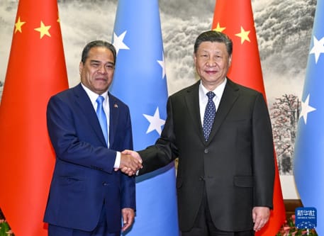 4月9日下午,国家主席习近平在北京人民大会堂同来华进行国事访问的密克罗尼西亚联邦总统西米纳举行会谈。