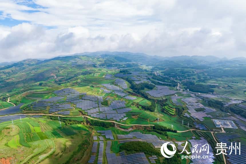 人民网威宁6月15日电 (涂敏、王秀芳、陈洁泉)云贵高原,乌蒙腹地,如蓝海般铺陈的光伏板一望无际,在阳光之下、群山之间熠熠生辉……登高远眺,贵州省威宁县仙水窝农业光伏电站蔚为壮观。