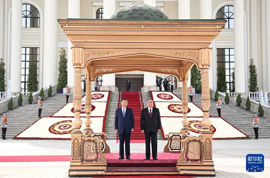 拉赫蒙为习近平举行盛大隆重的欢迎仪式。