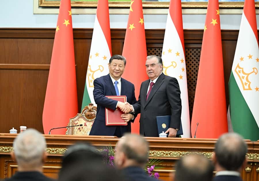 会谈后,两国元首共同签署《中华人民共和国和塔吉克斯坦共和国关于发展新时代全面战略合作伙伴关系的联合声明》,并共同见证交换经贸、投资、互联互通、关键矿产、安全、人文等领域数十项双边合作文件。