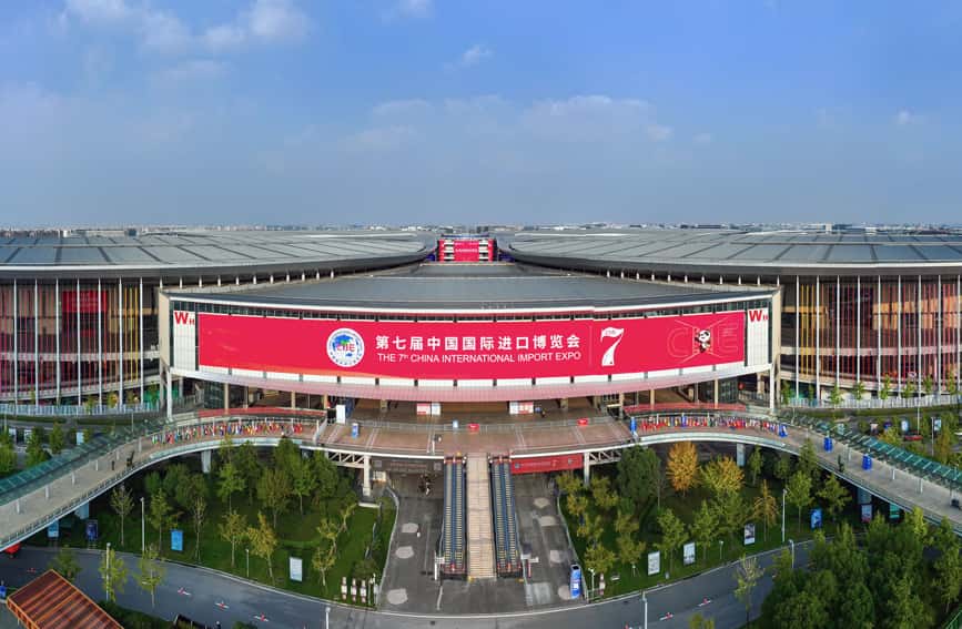 第七届中国国际进口博览会的举办地——国家会展中心(上海)已完成外部装饰及绿化,静待盛会。