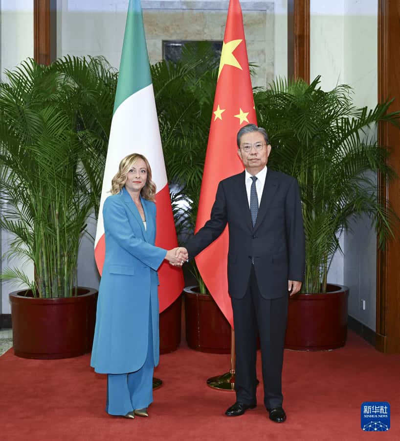 7月29日,全国人大常委会委员长赵乐际在北京会见意大利总理梅洛尼。新华社记者 张领 摄