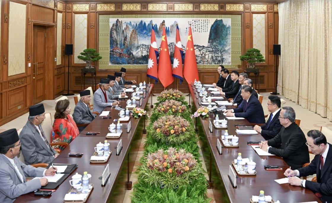 习近平强调,中方尊重尼泊尔选择符合本国国情的发展道路,支持尼泊尔维护国家独立、主权和领土完整,愿同尼方不断巩固战略互信,在涉及彼此核心利益问题上坚定相互支持。中尼跨喜马拉雅立体互联互通网络建设正逐步从设想变为现实。中方愿同尼方持续深化务实合作,高质量共建“一带一路”,加强口岸、交通、电网、通信等互联互通合作,帮助尼泊尔加快从“陆锁国”转向“陆联国”,继续在力所能及范围内支持尼泊尔经济社会发展,鼓励中国企业赴尼泊尔投资兴业。中方支持尼泊尔在华宣布2025年为“尼泊尔旅游年”,欢迎尼泊尔朋友来华经商、旅游、留学。中方也愿同尼方加强在联合国等多边协调配合,维护广大发展中国家共同利益。
