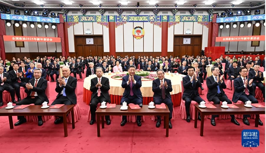 茶话会由中共中央政治局常委、全国政协主席王沪宁主持。他指出,要认真学习贯彻习近平总书记重要讲话精神,毫不动摇坚持中国共产党的全面领导,牢牢把握人民政协性质定位,坚持围绕中心、服务大局,以改革创新精神推进履职能力建设,坚定信心、团结奋进,为全面完成2025年我国经济社会发展目标任务广泛凝心聚力,为以中国式现代化全面推进强国建设、民族复兴伟业而不懈奋斗。