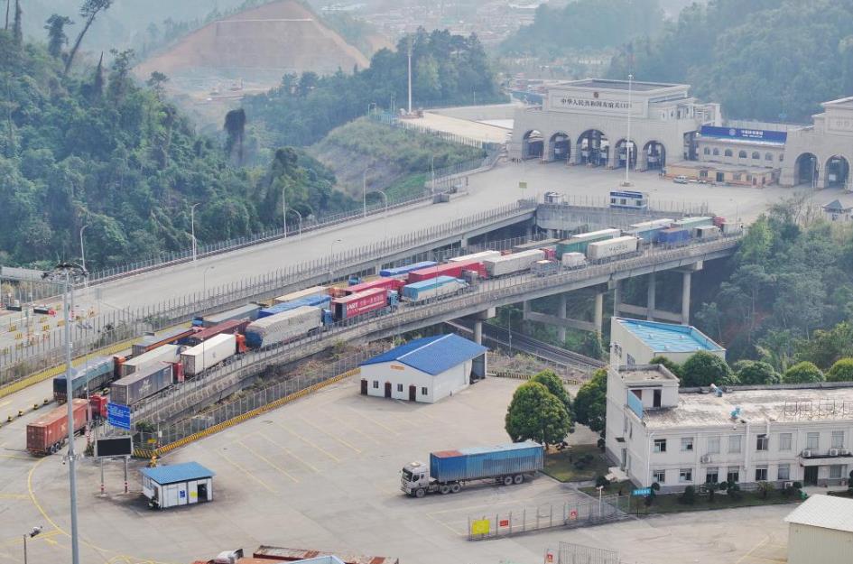 位于崇左凭祥市的友谊关口岸已成为中国通往越南最便捷的陆路大通道之一,两国商品在这里实现“双向奔赴”:一辆辆满载水果的货车从越南驶入中国-东盟(崇左)水果交易中心,随后发往中国各地;装满机电产品零部件的货车在中国一侧排成长队驶向越南。