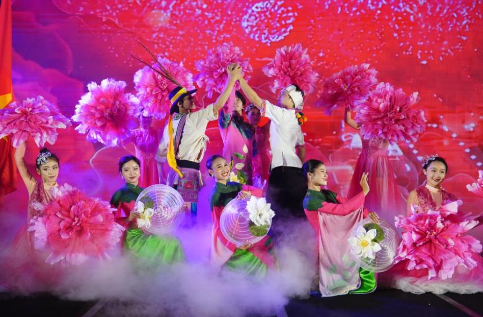 2024年9月16日,在越南胡志明市,艺术家在中越跨国中秋晚会上表演。新华社发(云南省人民政府新闻办公室供图)